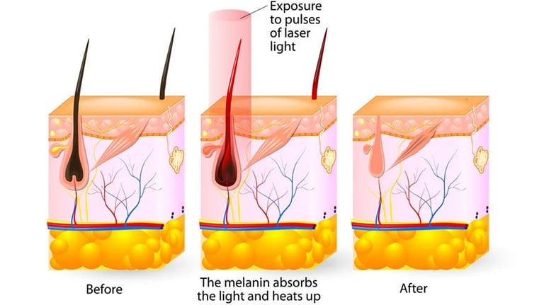 Targeting Hair Follicles: The absorbed light energy is converted into heat, which damages the hair follicles, inhibiting their ability to produce new hair. This process is known as selective photothermolysis.